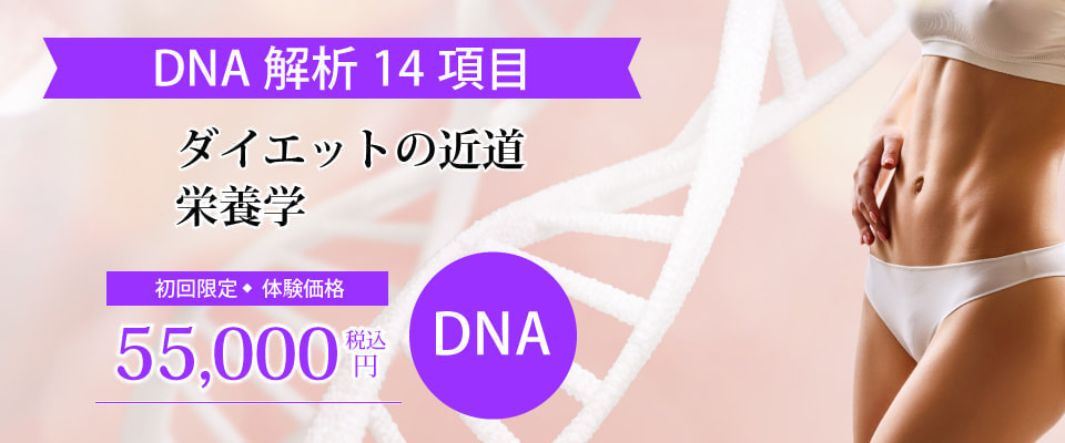 生まれ持った遺伝子を検査することで、「太りやすさ」「太る原因」を解析します。解析結果をもとに、健康的にダイエットをする食事のアドバイスをいたします。